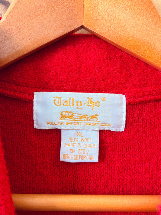 Vtg Red Wool Zip Up Vest : XL