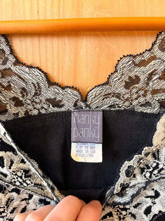 90s Black & White Lace Top : L