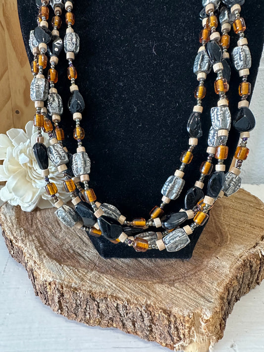 Three Strand Beaded Boho Necklace