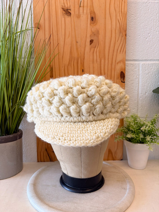 Slouchy Cream Bobble Newsboy Cap : Ladies OS