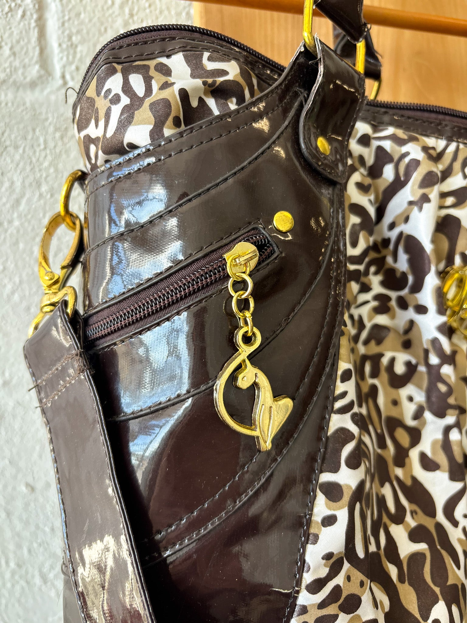 One front side zipper is broken and has some wear along the handles, shown in photos