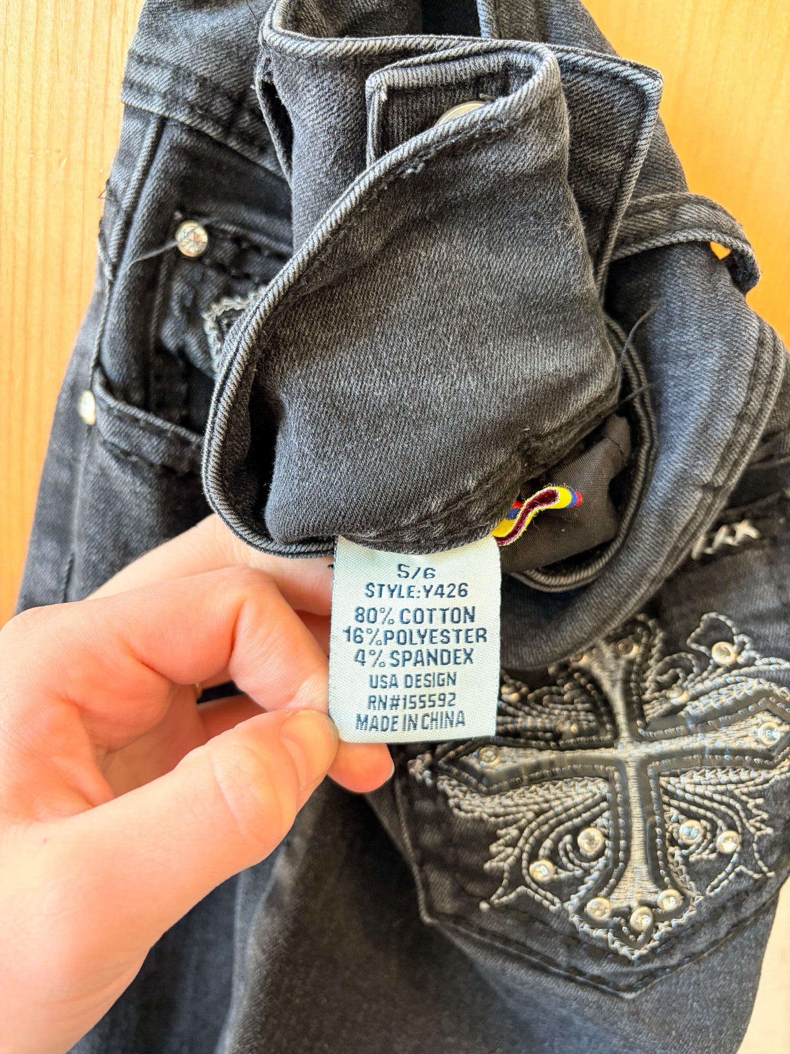 Tagged size 5/6, 24"W, 29"inseam, 10.5"R