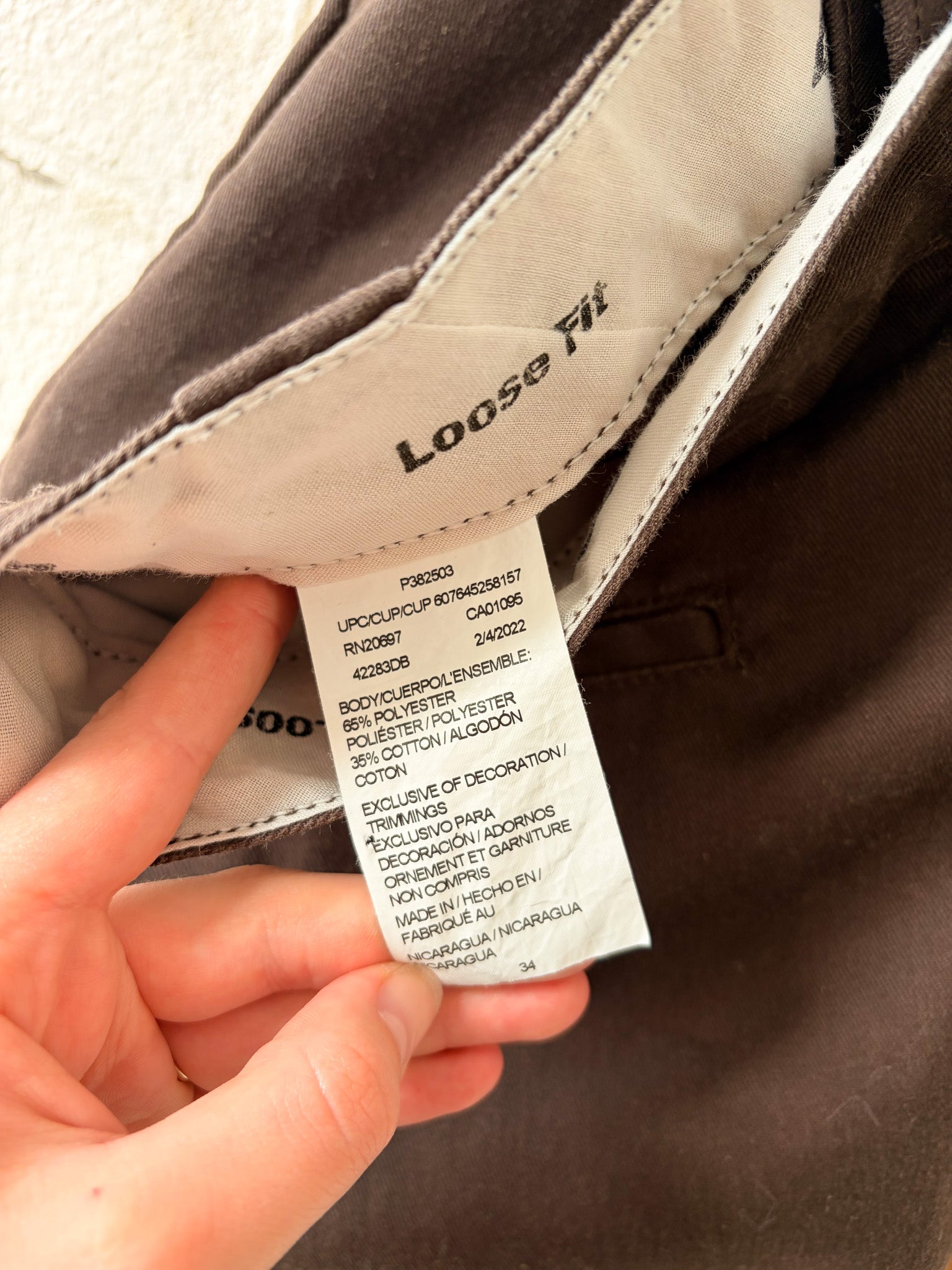 Tagged size 34, 34"W, 25"L, 13"R