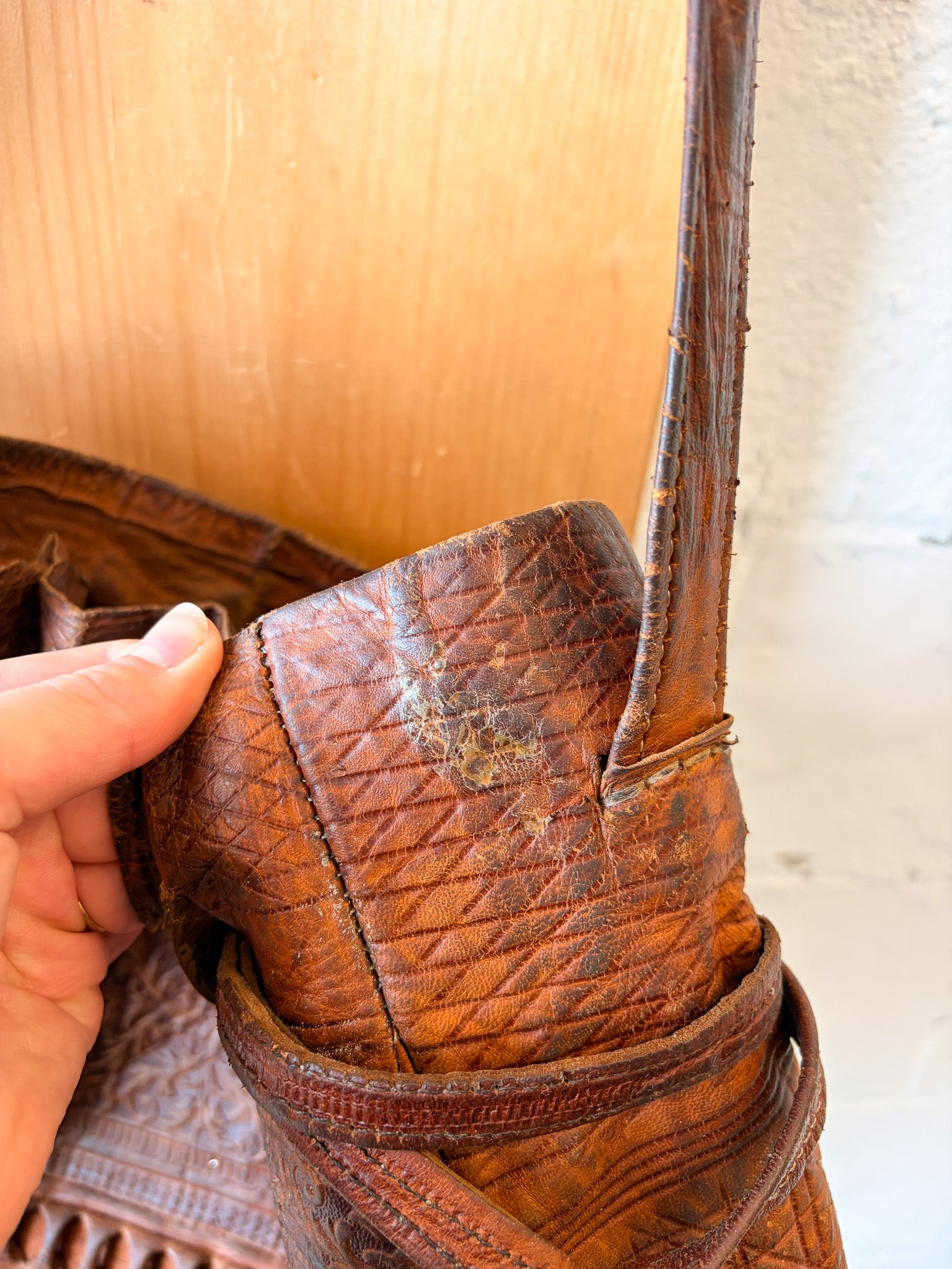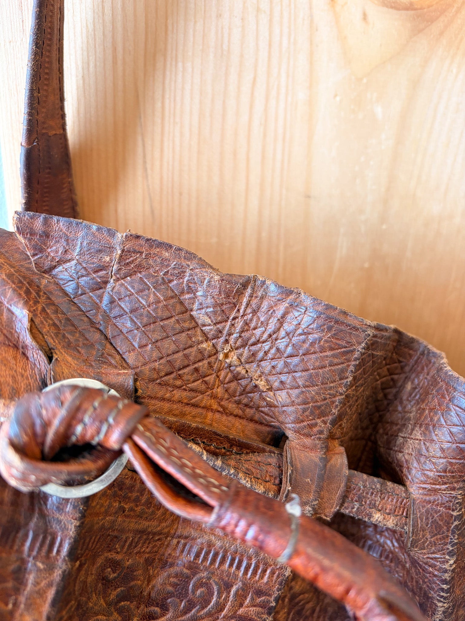 Tooled Leather Bucket Bag (As Is)