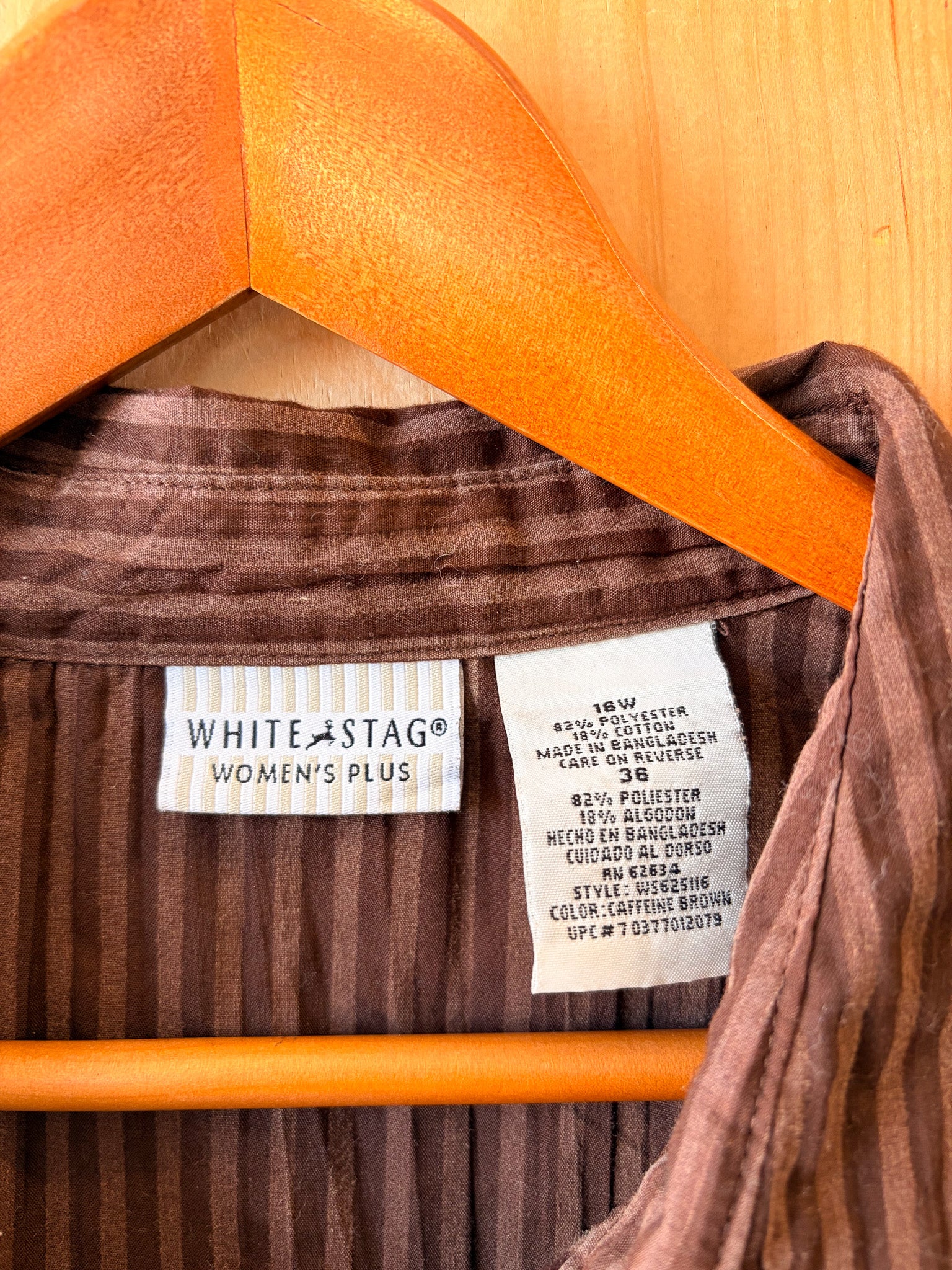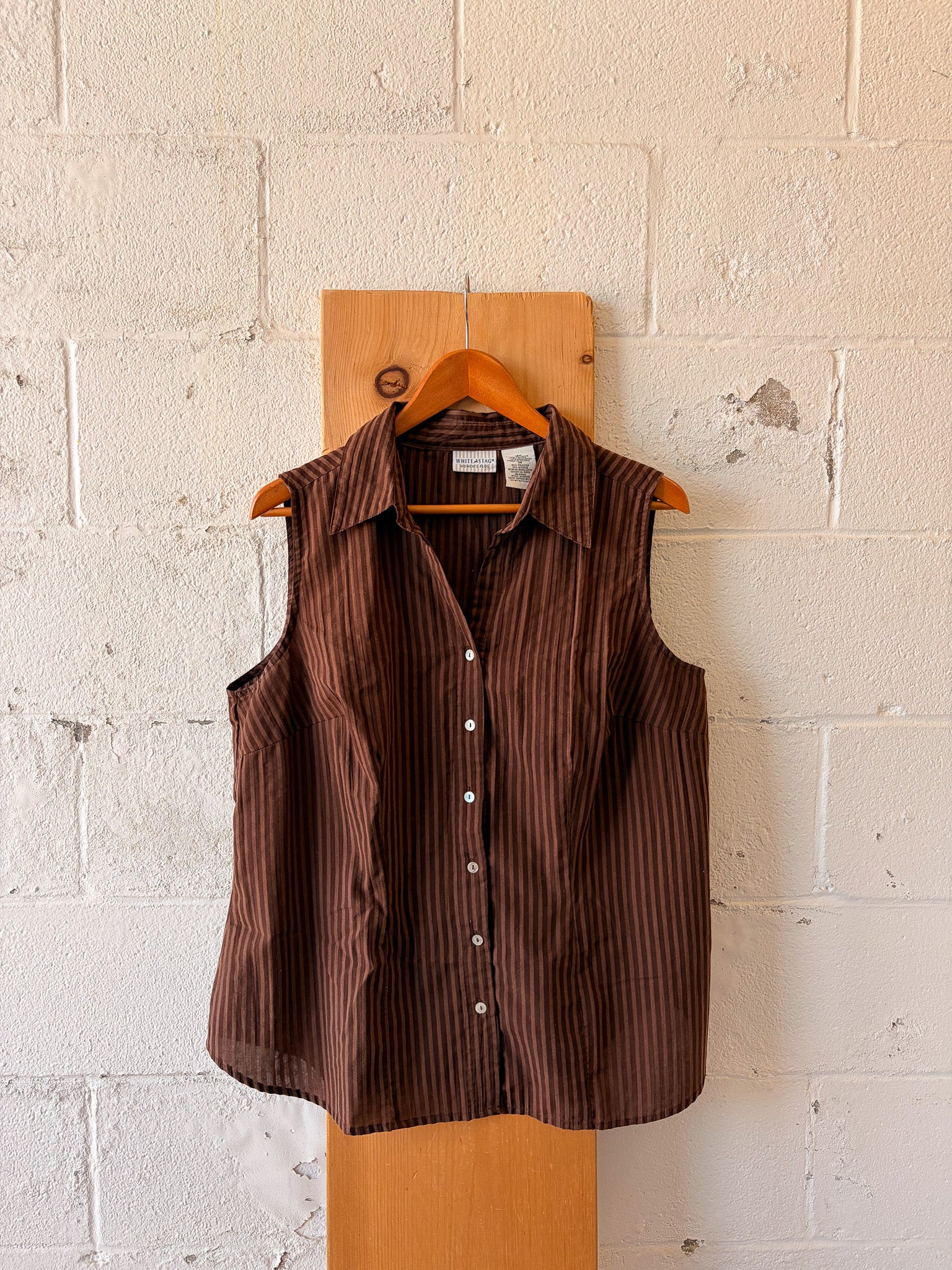 Vtg Brown Striped Sleeveless Button Up : 16W