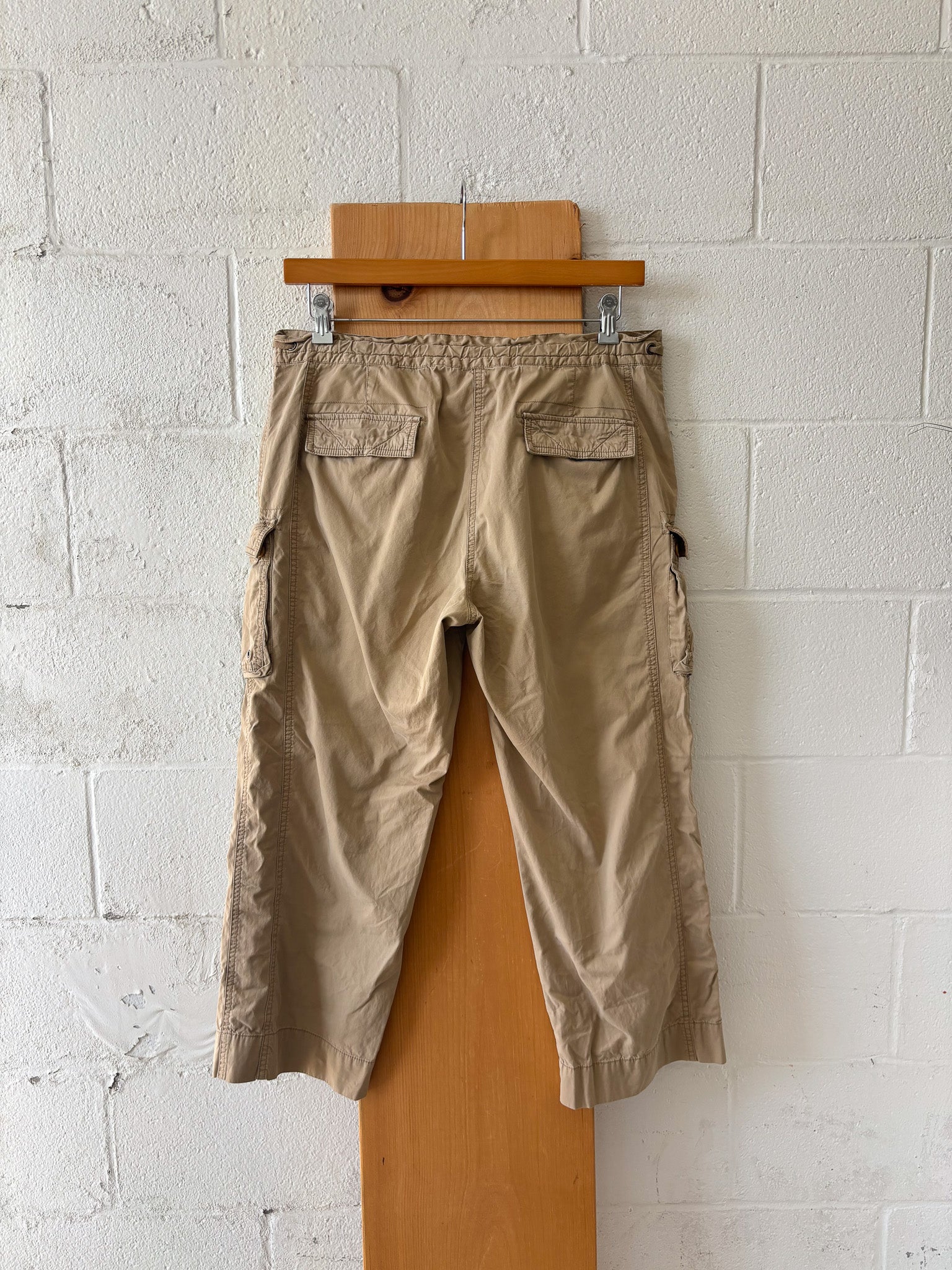 Tagged size 12 with a drawstring waist, 36"W, 24.5"inseam, 10.25"R