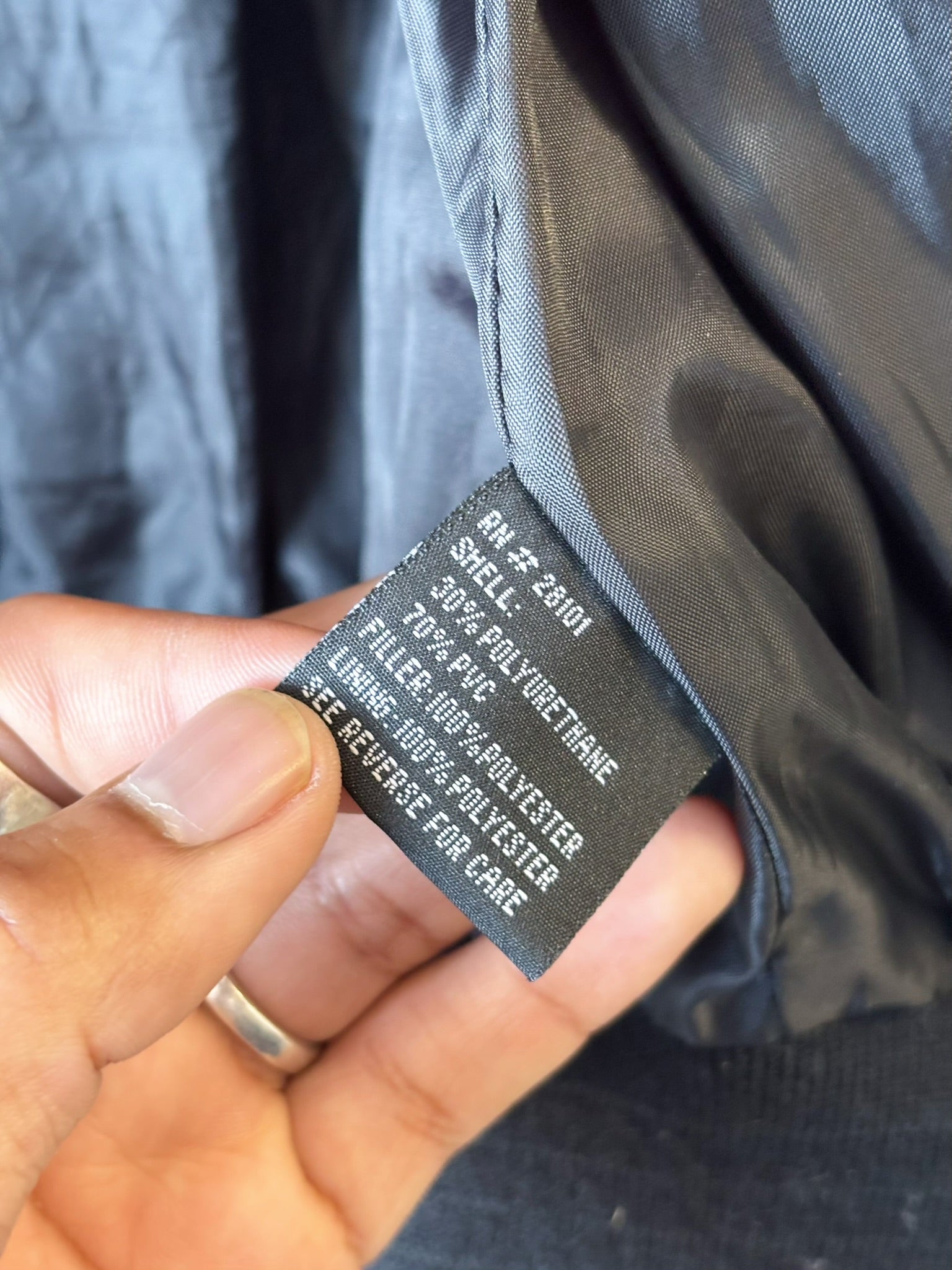 Size women’s large. Vtg Rave brand. Small tear as shown. 21” P, 22” L, 24” S