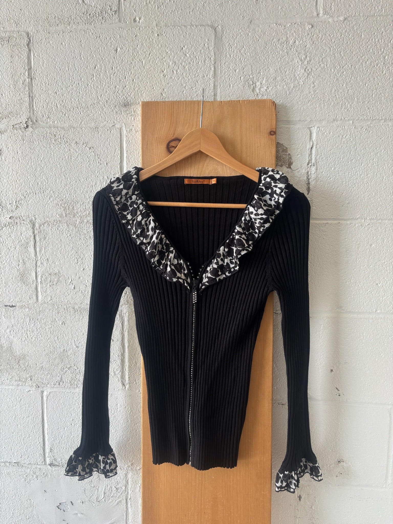 Ruffle Trim Zip Up Top : XL