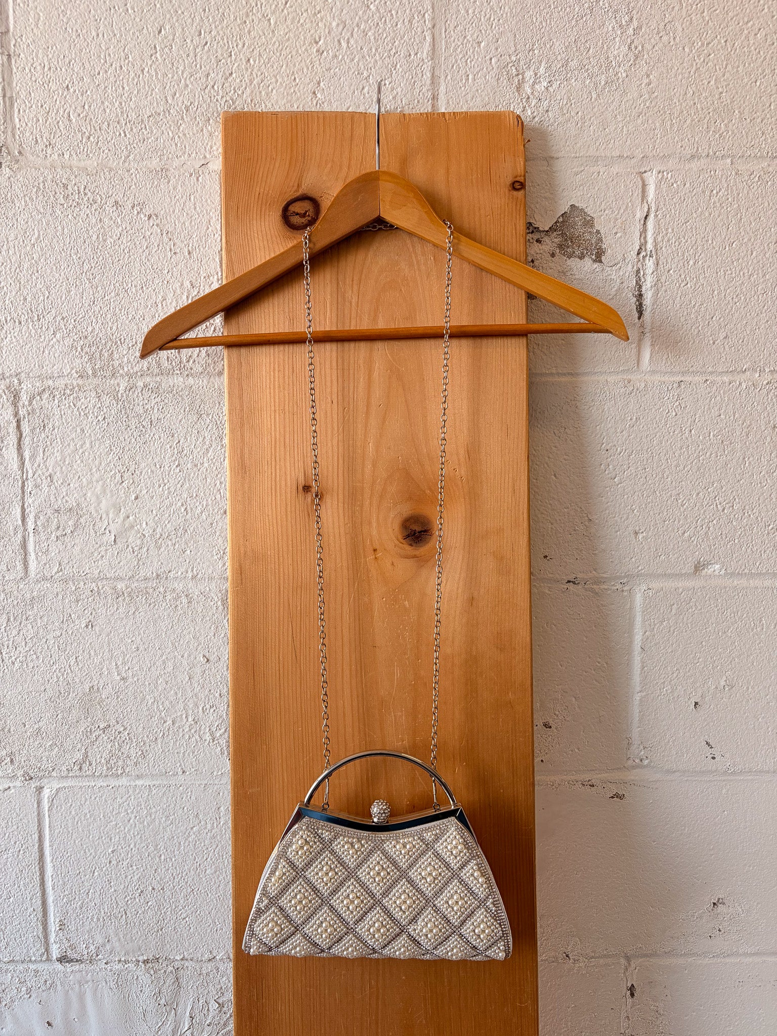 Silver Pearl Beaded Clutch Purse