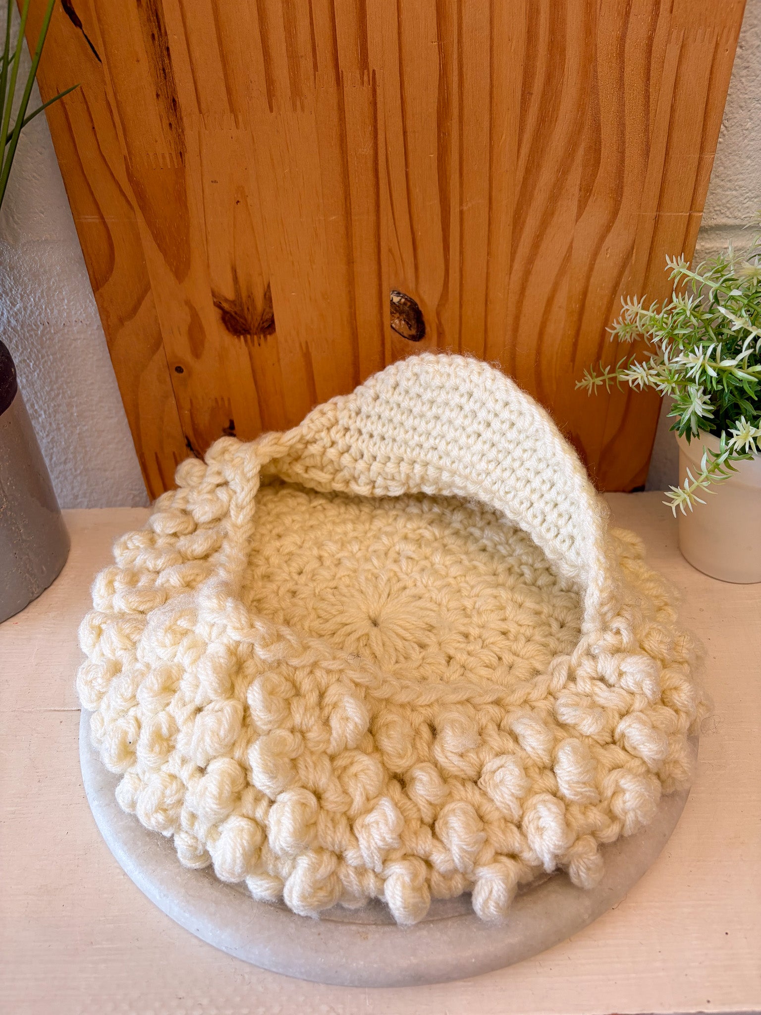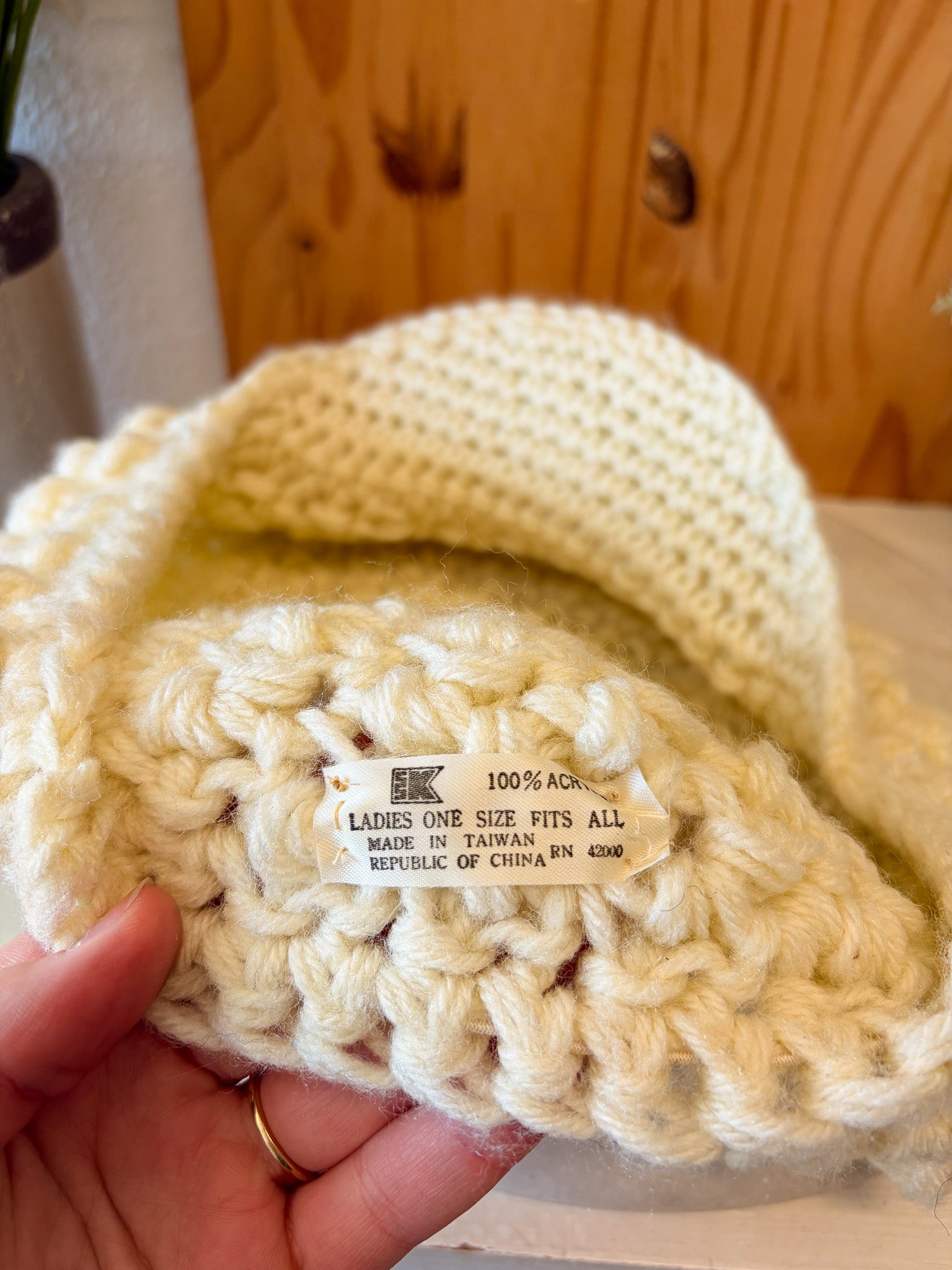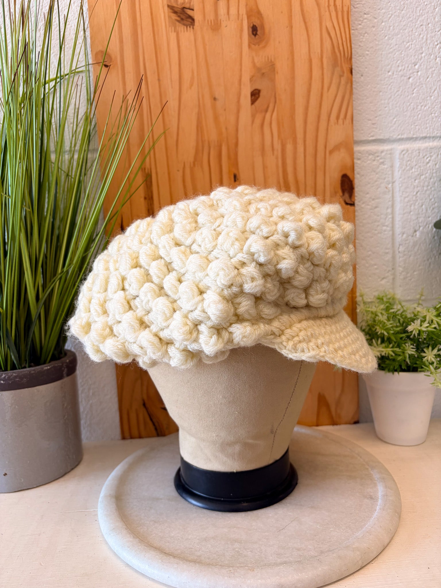 Slouchy Cream Bobble Newsboy Cap : Ladies OS