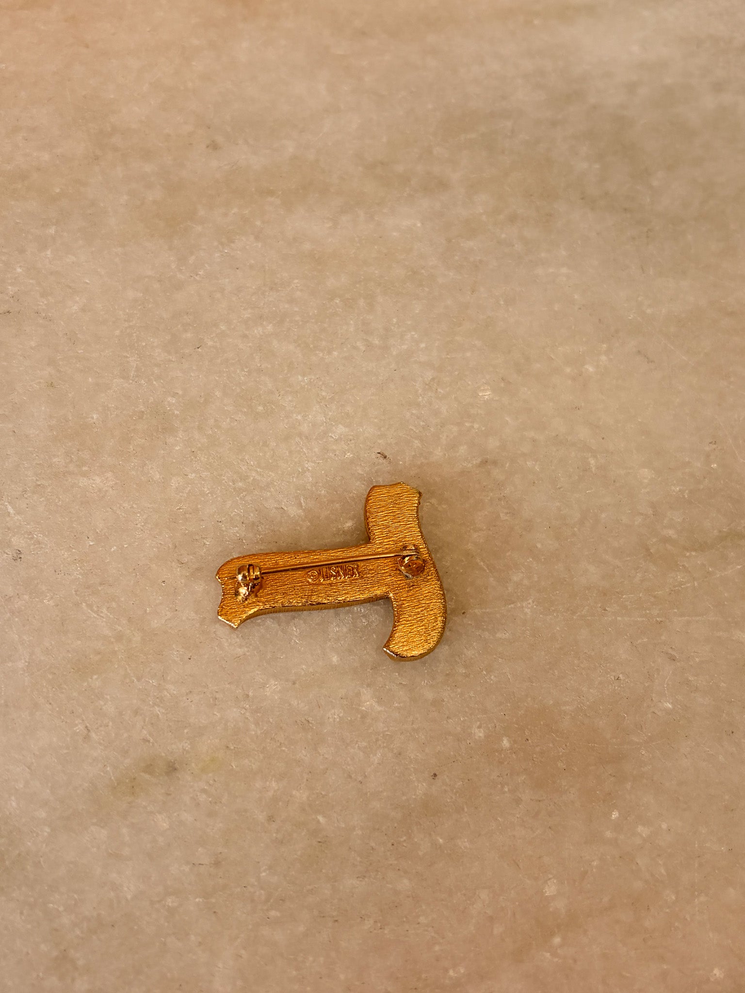 Vtg Black & Gold "T" Brooch