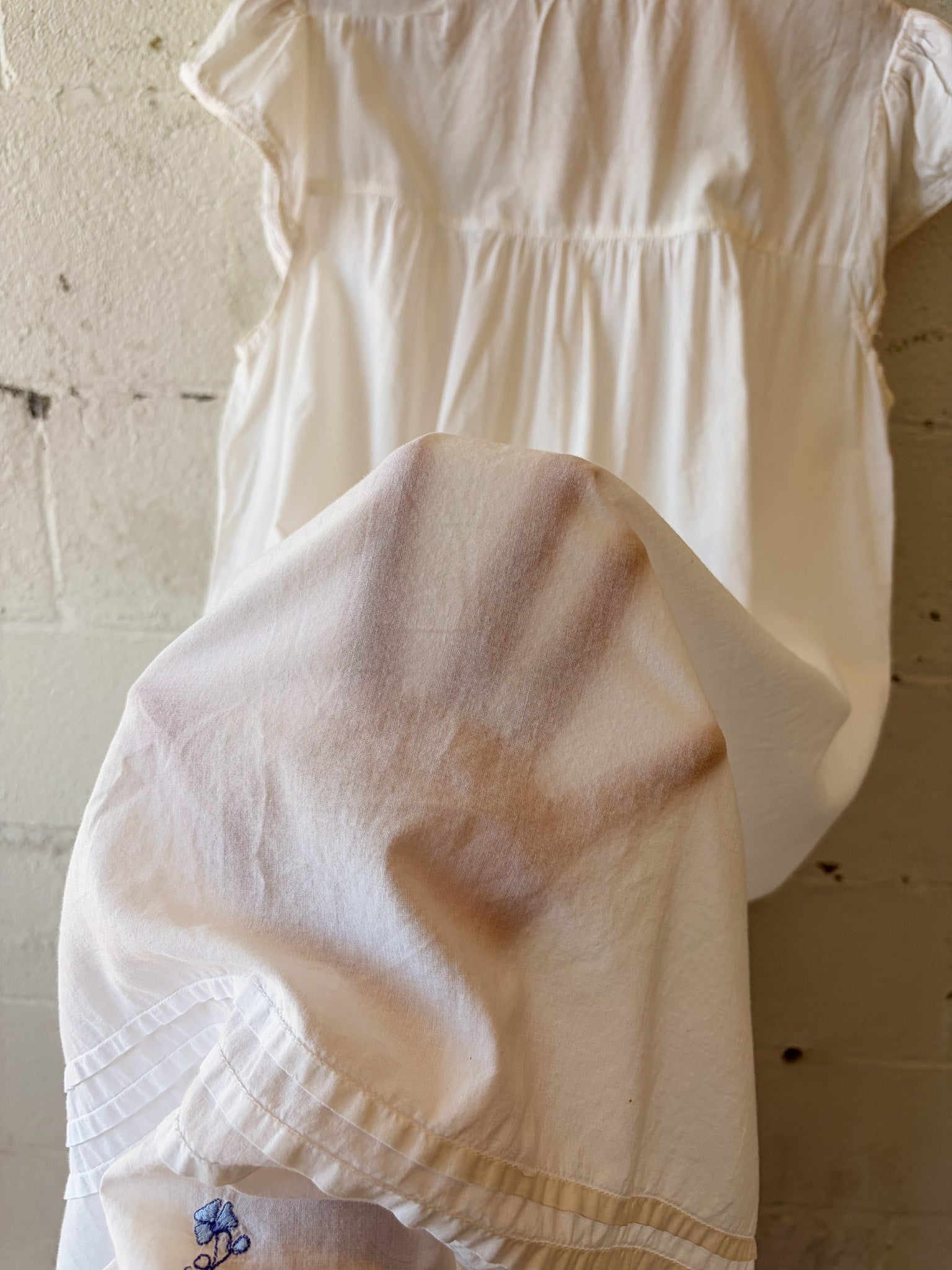 Vtg Blue Floral Embroidered Nightgown : M/L