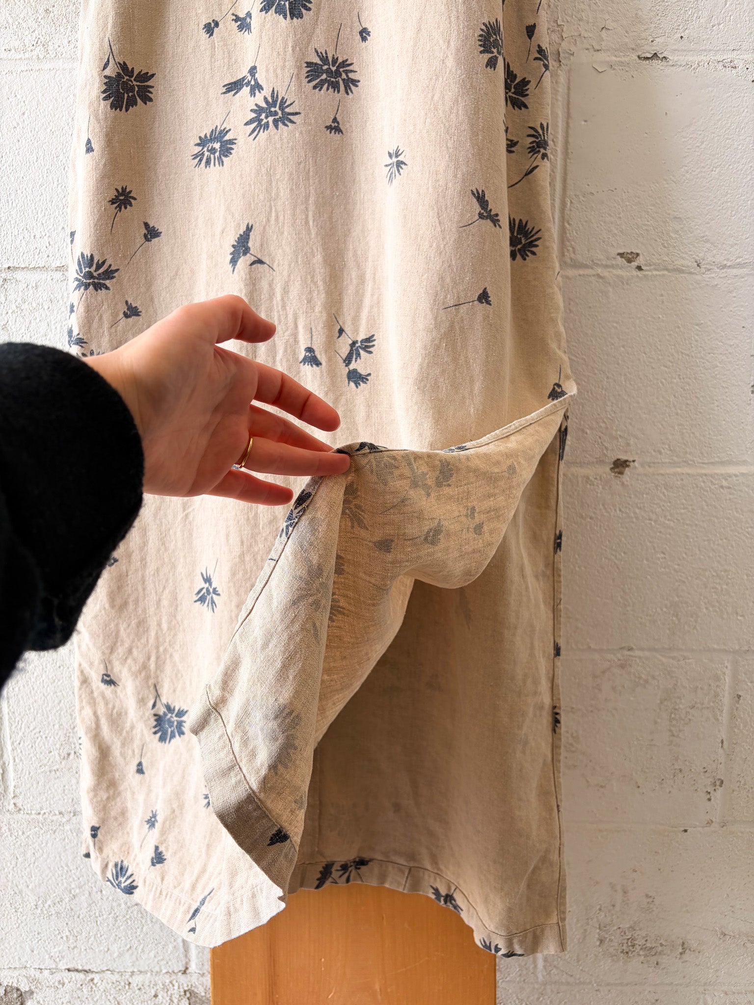 Vtg Floral Linen Dress : L
