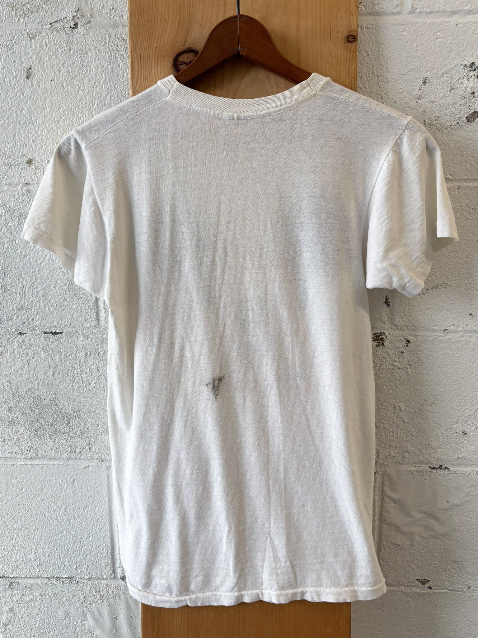 No size tag, fits like adult medium. Single stitch. Staining as shown. 20” P, 25” L