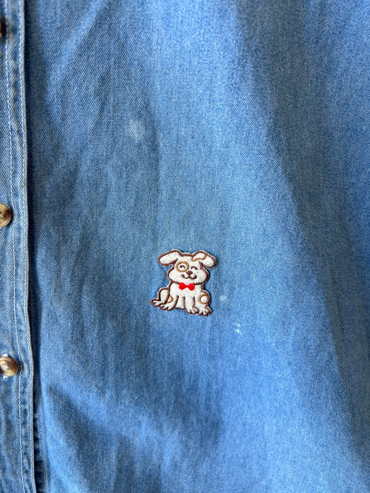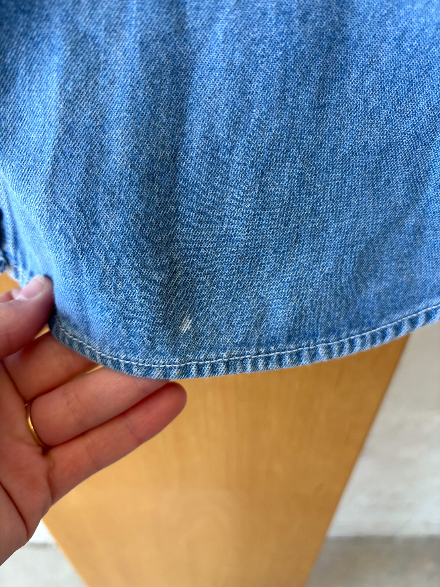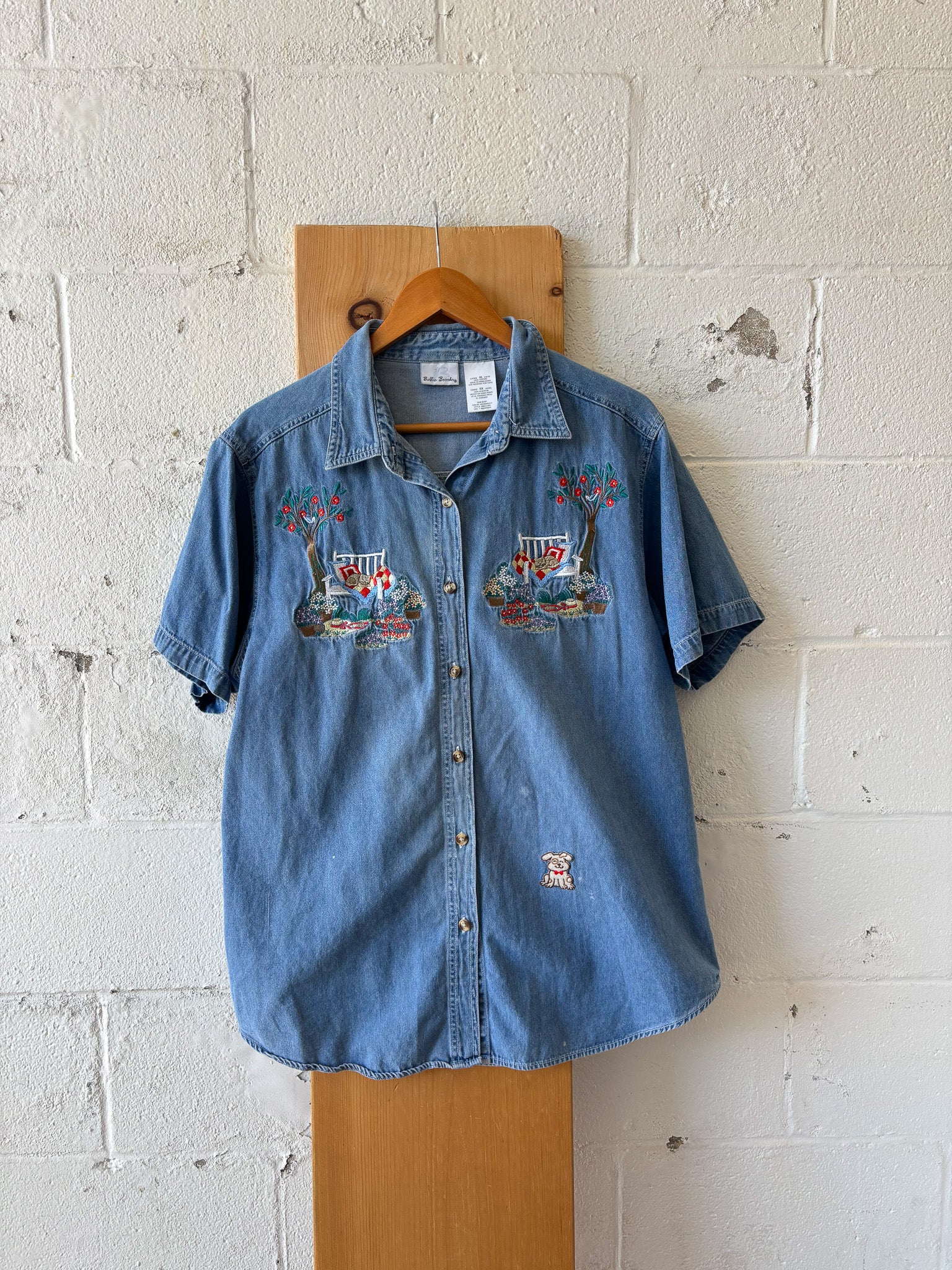 Vtg Short Sleeve Embroidered Denim Button Up : XL