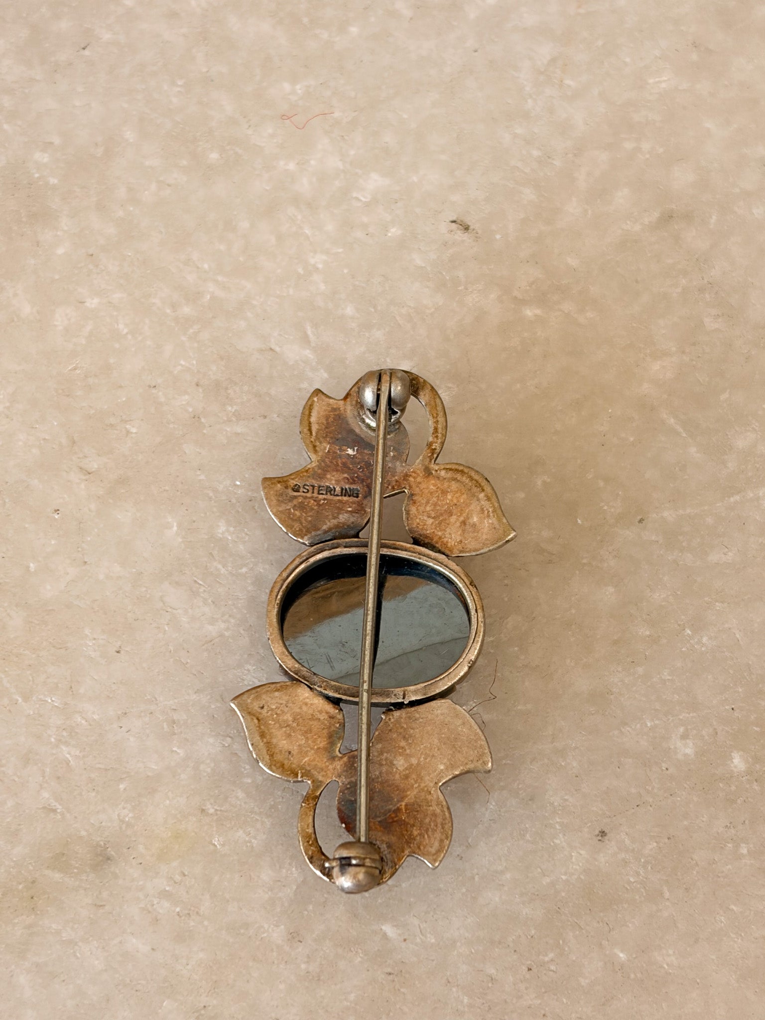 Vtg Sterling Onyx Brooch