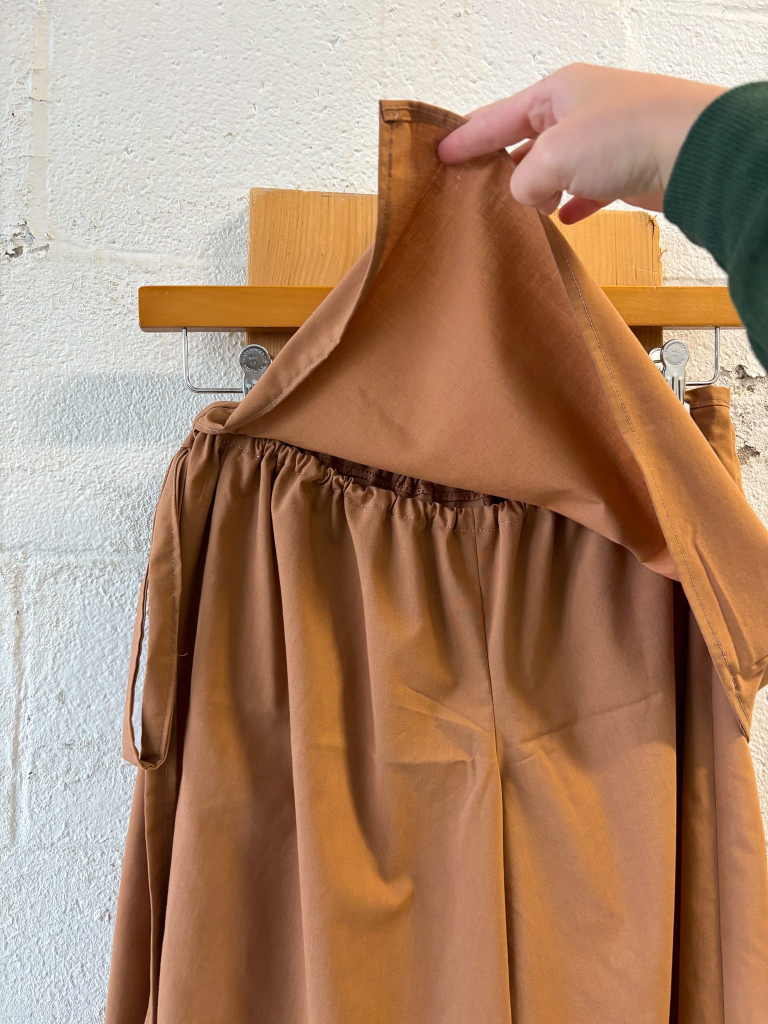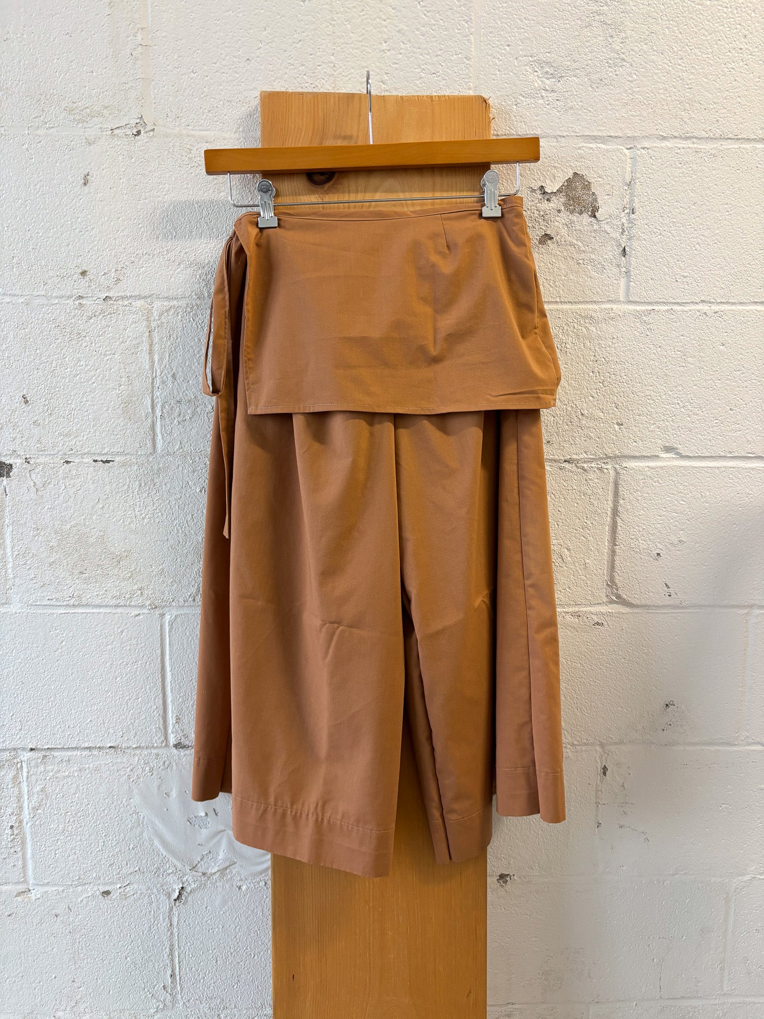 27"W (elastic waist and adjustable tie on the side of the skirt overlay), 22" Inseam, 10.5"R